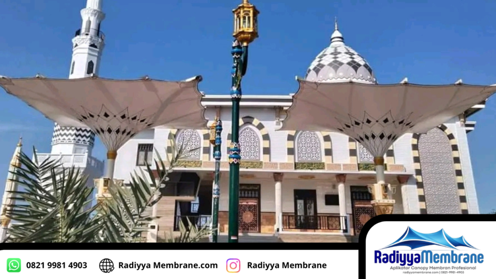 Kanopi membrane masjid menghadirkan solusi atap modern yang estetis, kuat, dan nyaman untuk menunjang aktivitas ibadah jamaah.